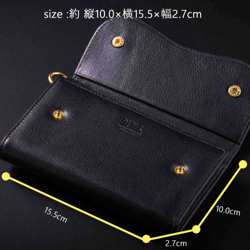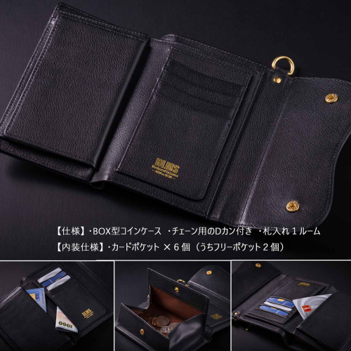 DLMSより初の三つ折り財布 ミドルサイズ レザーウォレット 本体の表地は、牛革を使用。 裏地、内装は牛革とシャンタン(ダークブラウン) を使用。 小銭入れは、BOX型のコインケースです。 背面にファスナーポケット(YKK ファスナー)を完備。 札入れは、1ルーム。 カードポケットは、6口(うちフリーポケット2口) チェーンなどを取り付けるDカン付き。 本体のサイズは、約 横15.5cm×縦10.0cm×幅2.7cm。