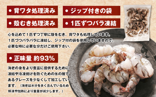 - 至福の大粒 むきえび 背ワタ処理済 3kg(1kg×3袋) ブラックタイガー 冷凍 ムキエビ 大型 海老