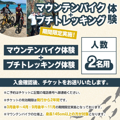 期間限定実施『パズル』オリジナル!マウンテンバイク+プチトレッキング体験チケット(2名) 阿久根 MTB アウトドア アクティビティ 自然 体験 ツアー チケット 秘境 プチトレッキング【パズル】akn098-10