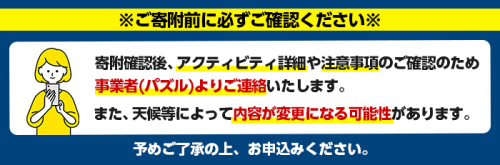阿久根の自然を満喫できるツアーを御提供! 鹿児島県の北薩地域や阿久根市をメインに、山や海や川でのアクテビティを提供するアウトドアアクティビティツアー会社『パズル』から、阿久根の自然を満喫できるツアーを御提供! 世界でも珍しい自然環境に触れ、東シナ海を眺めながら無人島やプライベートの浜へ行くことができます。 一歩海に出るだけで、非日常を感じられる、阿久根ならではの時間をお届けします。 【注意事項】 入金確認後、チケットをお送りいたします。 ※ご予約はチケットに記載の電話番号へ御連絡ください。 ※チケットの有効期限は発行から2年間です。 ※5月中旬から10月下旬ごろまでの期間限定実施となっております。 ※6歳未満のお子様はご利用いただけません。 地産理由:阿久根市内で提供される役務のため