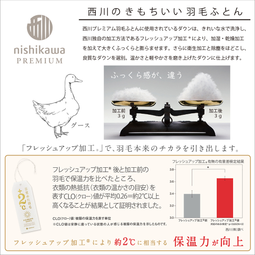 西川が厳選した羽毛と独自の技術で創りあげたシリーズ。