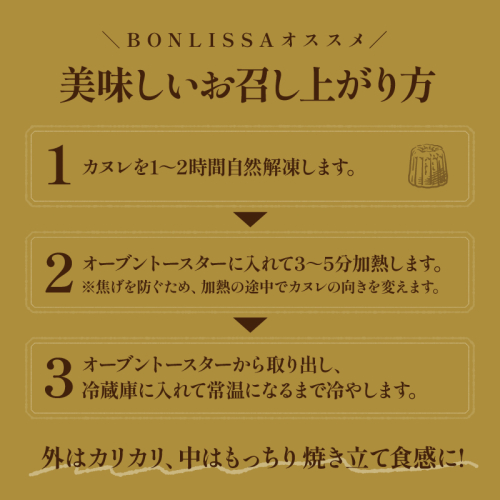 焼き上げたカヌレを急速冷凍しているため、出来立ての味をお楽しみいただけます!!