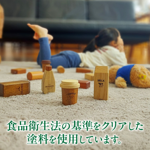 大人の真似をしたがる子供の為に本物そっくりのデザインで、着色をせず、それぞれの樹種の色を利用して日本の職人がひとつひとつ丁寧に手作業で製作しています。