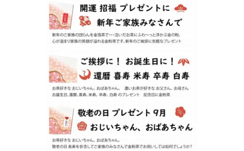心が温まり家族の笑顔が溢れる金粉茶です。正月の団欒、お年賀、手土産に最適です。