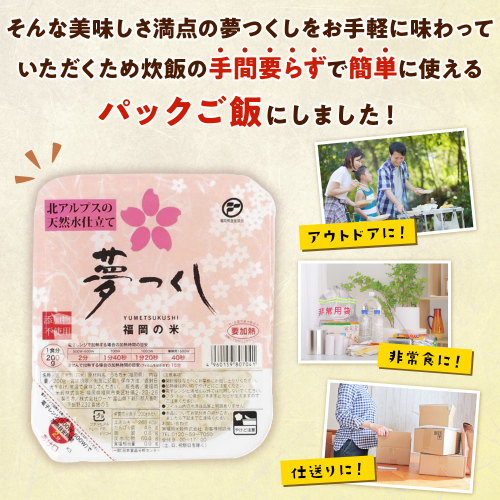 福岡県が独自に開発した銘柄米「夢つくし」の便利なパックご飯です。