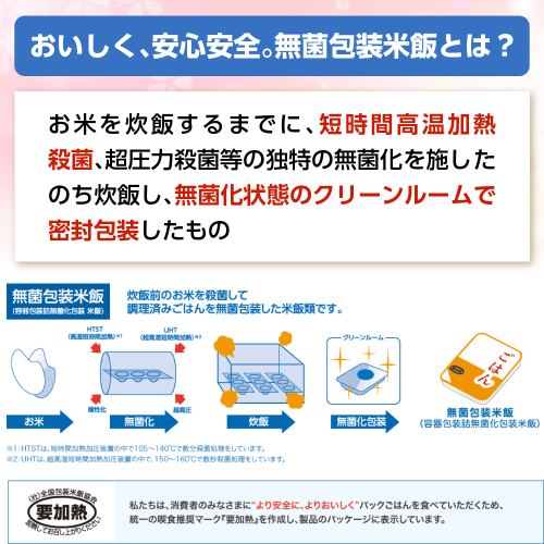 3.お米と水と製造工程にこだわりご飯本来の風味を活かした無菌包装米飯です。