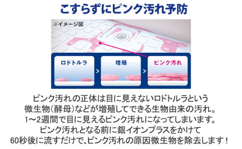 浴そうをこすらず洗える上に、銀イオン配合により「除菌」も「ピンク汚れ予防」もこすらずできる浴室用洗剤