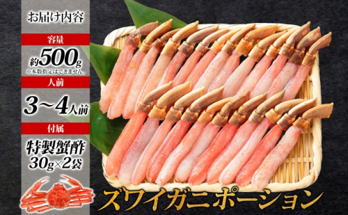 ズワイ蟹 ポーション 500g前後 生食可 蟹酢付【北国からの贈り物 約3-4人前 昆布塩加工 しゃぶしゃぶ かに カニ ズワイガニ 脚 ズワイ蟹 ずわい蟹 ずわいがに むき身 生食 刺身 蟹肉】 020C439