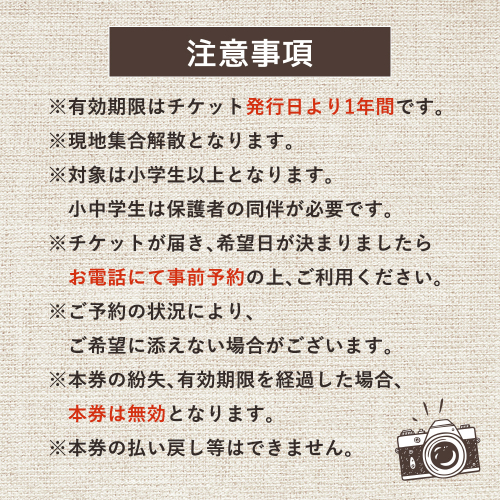 ※チケットが届き、希望日が決まりましたらお電話にて事前予約の上、ご利用ください。