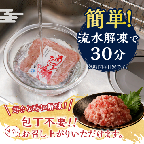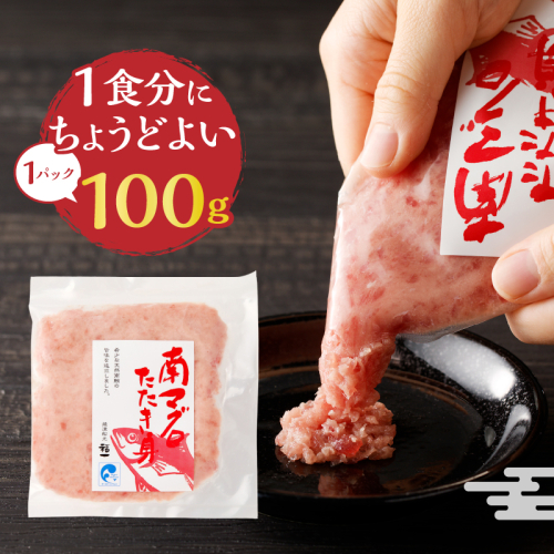 【説明】老舗まぐろ専門店がお届けする、天然南まぐろのたたき身をお届けします!まぐろの中でも漁獲量が少なく甘みが特長の天然南まぐろのたたき身です。粒感までしっかりと味わえ、手巻きやどんぶりなど、どんな料理にしても存在感がある食べ応えとなっています。小分けタイプなので好きな時に解凍して包丁不要、すぐにお召し上がりいただけます。