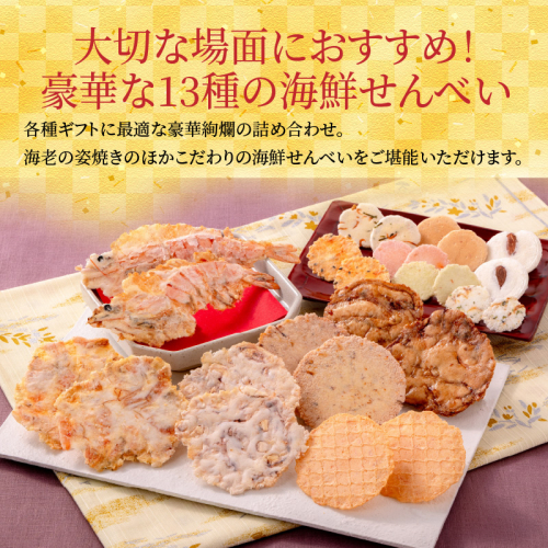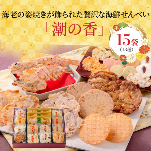 ワンランク上の海鮮煎餅詰合せ「潮の香15袋(13種)」 海老 えびせん 海老姿焼き 贈り物 ギフト お歳暮 せんべい おつまみ 海鮮 乾物 和菓子 醤油味 お菓子 おやつ 煎餅 小分け 海鮮せんべい えびせん家族 人気 高リピート H011-139