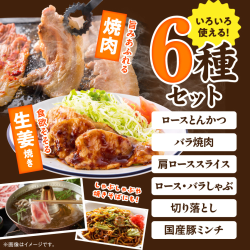 ロースとんかつ、バラ焼肉、肩ローススライス(生姜焼き用)、切り落とし、ロース・バラしゃぶ、ミンチ全部セットでお届けいたします!