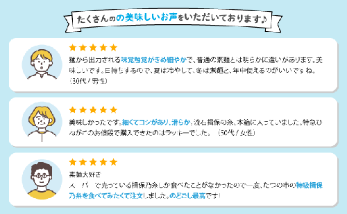 ベルギーのブリュッセルに本部を置く、世界で最も権威ある「味」を審査する International Taste Institute(国際味覚審査機構)において、手延そうめん揖保乃糸特級品が2012年から12年連続、上級品が過去8回、優秀味覚賞の中でも「極めて優秀」とされる、最高評価「三ツ星」を受賞しています。