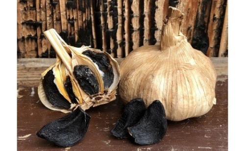 播州龍野の苗村農園栽培のにんにくを使った、こだわりの逸品。自社農園のにんにくを、熟成発酵することで、匂いが少なく、しっとりとした食感でドライフルーツのような甘さになりました。