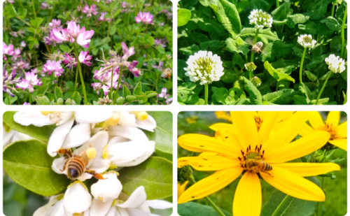 一年の中でミツバチが最も活動的になる春から夏にかけては、私たち養蜂家にとってハチの蜜を最も多く採取できる時期でもあります。ミツバチは野山を飛び回り、春は菜の花やレンゲ、田植えの頃よりミカン、クローバー、ソヨゴなど、さまざまな花から蜜を集めてきます。『百花はちみつ』はその名の通り、「百の花から集めた蜜」という意味から名前がつけられました。