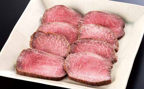兵庫県たつの市にある昭和30年創業の老舗精肉店「肉の山喜」が、ふるさと感謝便限定で、通常は店頭販売していない“至極のローストビーフ”をご用意しました。赤身の牛モモ肉ですが、最高の肉質A5ランク相当の黒毛和牛を使用しておりますので、上品な霜降りと上質な舌触りをお楽しみいただけます。和牛のうま味を一口ひとくちじっくりとご賞味ください。