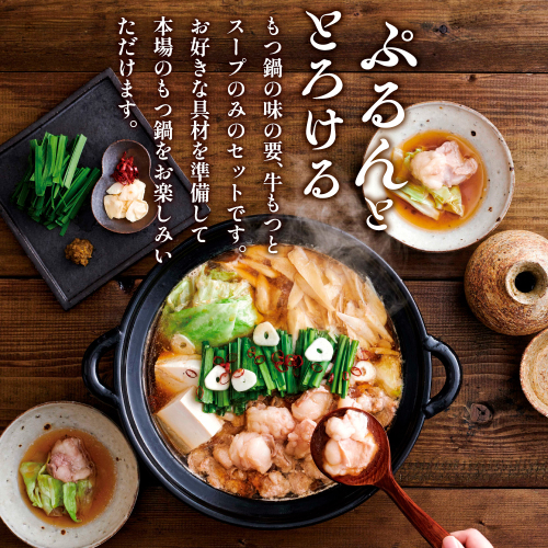 ぷるんととろける大ぶりの国産牛もつを人気店「博多もつ鍋やまや」の特製スープとともにお楽しみいただけるもつ鍋セットです。
