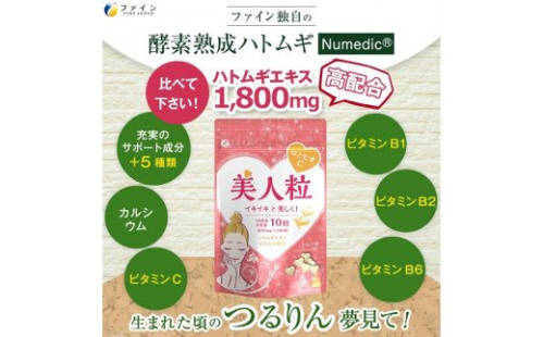 ●ハトムギの成分を抽出したエキス末を1.8g配合(1日10粒あたり)。