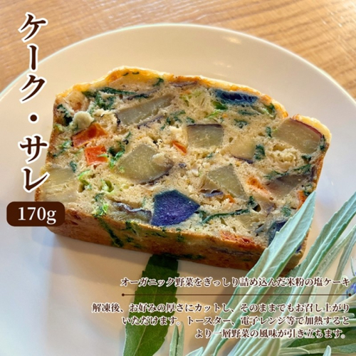 【ケーク・サレ】有機野菜(5-8種類)(京都府京丹後市産)、卵、米粉、ナチュラルチーズ、バター、菜種油、有機純米酢、天日塩/重曹