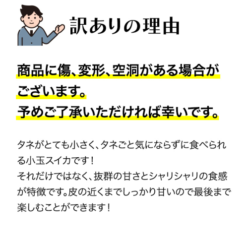 タネがとても小さく、タネごと気にならずに食べられる小玉スイカです!それだけではなく、抜群の甘さとシャリシャリの食感が特徴です。皮の近くまでしっかり甘いので最後まで楽しむことができます!