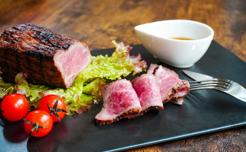 直火で表面をしっかり焼き上げることで外から中へじっくり火を通し、うま味を逃すことなく閉じ込めます。絶妙にやわらかく滑らかな口当たりのお肉が舌を優しく包み込みます。