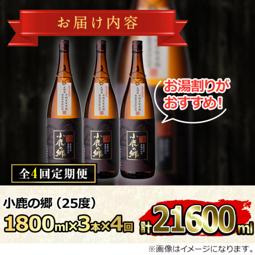 【1500313b】<定期便全4回(2月・5月・8月・11月発送)>薩摩焼酎 鹿児島県限定販売!小鹿の郷(1800ml×3本組×全4回) 焼酎 酒 アルコール 芋焼酎 薩摩芋 常温 常温保存 定期便【児玉酒店】