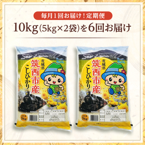 - 【 定期便 6ヶ月 】 茨城県 筑西市産 コシヒカリ 10kg ( 5kg × 2袋 ) 令和7年産 新米 三ツ星 マイスター 米 コメ コシヒカリ こしひかり 茨城県 単一米 精米 新生活 応援 [CH009ci]