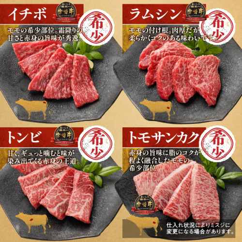 上品な味わいの宮崎牛を、希少部位が入った焼肉用10種類でご用意しました。