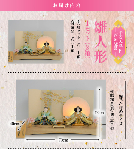- 【飾り台セット“有明”】人形作り40年 “平安天鳳”作 京都西陣袋帯 御所 黄金 手作り ひな祭り 木製 今どき かわいい おしゃれ モダン H067-141