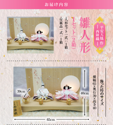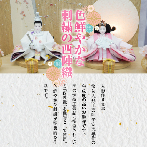 - 【飾り台セット“桜舞”】人形作り40年 “平安天鳳”作 京都西陣織 四条 薄花桜 手作り ひな祭り 木製 今どき かわいい おしゃれ モダン H067-154