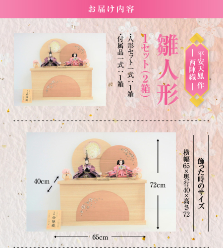 【収納飾りセット“山型重ね”】人形作り40年 “平安天鳳”作 京都西陣織 まどか 紅の匂ひ 手作り ひな祭り 木製 今どき かわいい おしゃれ モダン H067-145