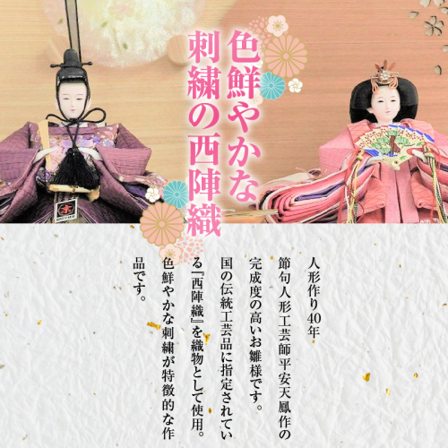 節句人形工芸師 平安天鳳作の完成度の高いお雛様です。