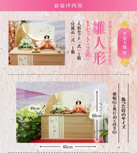 【収納飾りセット“山科”】人形作り40年 “平安天鳳”作 丹後ちりめん 人参草木染め 手作り ひな祭り 木製 今どき かわいい おしゃれ モダン 碧南 にんじん 人参 H067-153