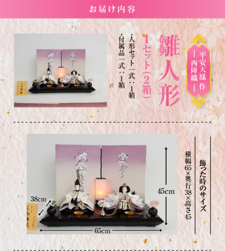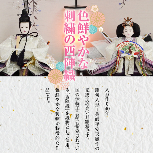 - 【飾り台セット“旬音”】人形作り40年 “平安天鳳”作 京都西陣織 桜花 菊重ね 手作り ひな祭り 木製 今どき かわいい おしゃれ モダン H067-146