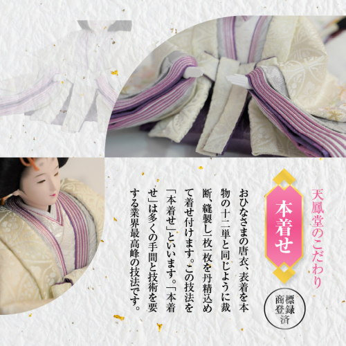 本物の十二単と同じように仕上げています。