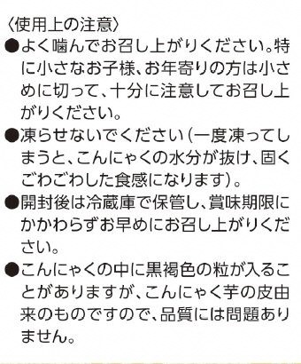 ・凍らせないでください(こんにゃくは一度凍ってしまうと、水分が抜け、固くごわごわした食感になります)。