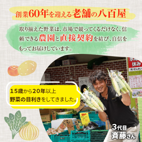 今が旬の野菜を八百屋が厳選してお選びいたします。
