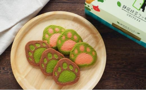 抹茶スイーツ専門店 雅正庵で人気の静岡抹茶バウムクーヘン「CHIYOの和」の人気キャラクター クマのCHIYOまるの手形を模した、肉球と丸いフォルムが愛らしいクッキーです。