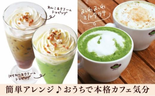 抹茶ラテパウダーには砂糖とミルクも含まれているので、お湯で溶かすだけで簡単に本格的な抹茶ラテが作れると、多数のカフェやスイーツ専門店でご愛顧いただいています。そんなプロ御用達の本格味をご家庭でもお楽しみいただけます。