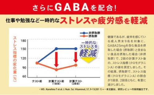 【届出表示】本品にはルテイン、ゼアキサンチンとGABAが含まれます。ルテイン、ゼアキサンチンには、目の黄斑部の色素密度の増加によるブルーライトなどの光のストレスの軽減、コントラスト感度(ぼやけ・かすみの軽減によりくっきり見る力)を改善し、目の調子を整えることが報告されています。GABAには、仕事や勉強による一時的な精神的ストレスや疲労感を軽減する機能があることが報告されています。