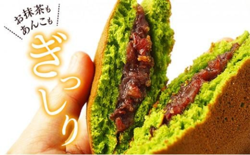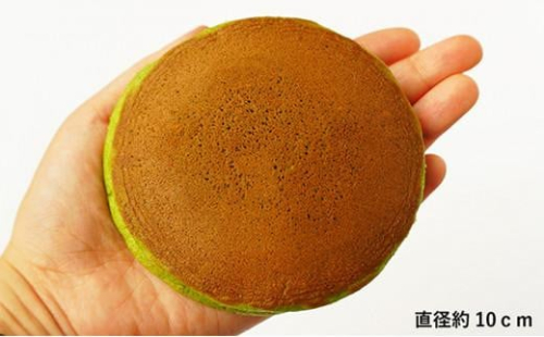 緑鮮やかな静岡抹茶の爽やかな香りのどら焼き皮は、自社工場で一枚一枚丁寧に焼いており、独自配合によりパンケーキ風のふっくら仕上げ。