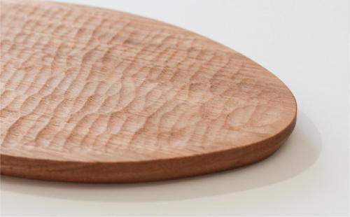 天然木の樹皮や質感を活かした製品です。当社の家具生産時に発生する端材を有効活用して手ごろなサイズの配膳用プレートを作りました。