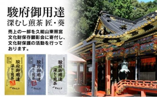 「駿府御用達」は家康公が愛したといわれる、静岡銘茶産地「本山」の茶葉を使用し、当店独自の深蒸し製法で仕上げた深蒸し煎茶です。当商品は徳川家康公薨去400年記念の年に発売をスタートしました。