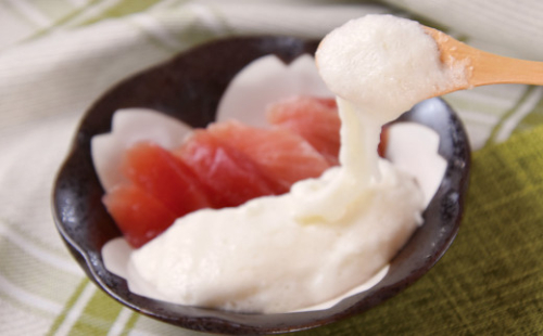 静岡県でのみ育てられる自然薯の品種(農試60号)は、真っ白で粘りが強く、絹のようになめらかで光沢があり、自然薯特有の香りが特徴です。