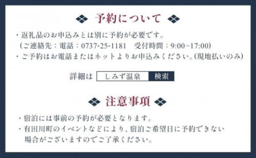 ・有田川町のイベントなどにより、宿泊ご希望日に予約できない場合がございますのでご了承ください