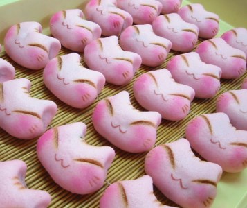 京都の和菓子職人が作る、可愛い猫の上用饅頭。