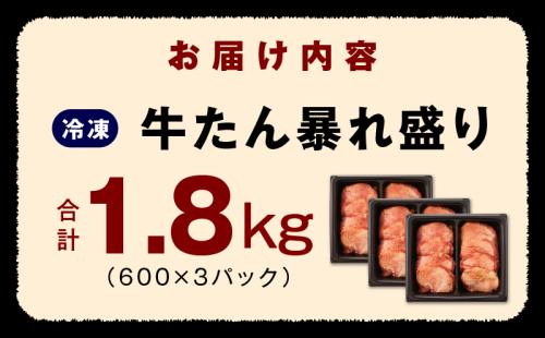 牛たん 暴れ盛り 1.8kg 小分け 600g×3P【牛肉 牛タン 牛たん 厚切り 焼肉 BBQ キャンプ アウトドア 焼くだけ 簡単調理 訳あり サイズ不揃い 小分け 家計応援】 G3507