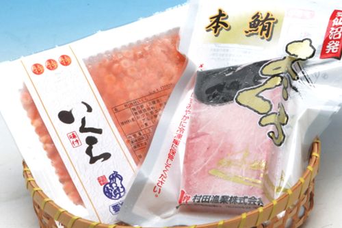 気仙沼のまぐろ船が漁獲した本まぐろと最高級3特の国産味付いくらをセットにしました。
