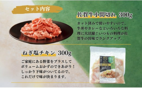 牛肉&鶏肉 佐賀の地元産お肉を2種楽しめる 佐賀牛小間切れ ありたどり塩ネギ セット 各300g 計600g 肉 佐賀牛 牛肉 おすすめ N13-3