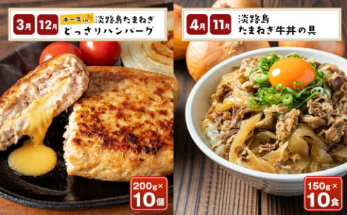 1月には溢れる肉汁と玉ねぎの甘味が絶妙な「淡路島たまねぎプレミアムハンバーグ」、2月にはもちもちとした食感と淡路島たまねぎのジューシーな旨味が味わえる「淡路島たまねぎたっぷりジューシー餃子」、その他、牛丼、新たまねぎ、コロッケなど、バラエティに富んだメニューが12ヶ月間続きます。